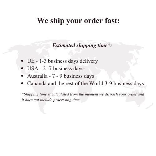 The shipping time is short, depending on the country 2-3 days (USA, Canada, EU) or 1 week for Australia and rest of the world.
