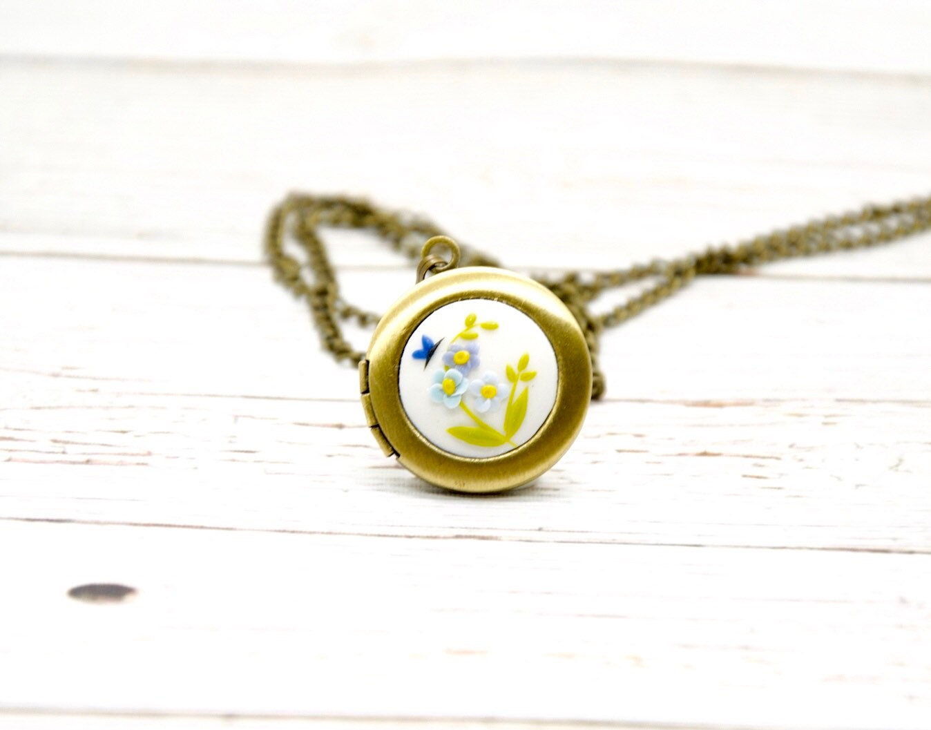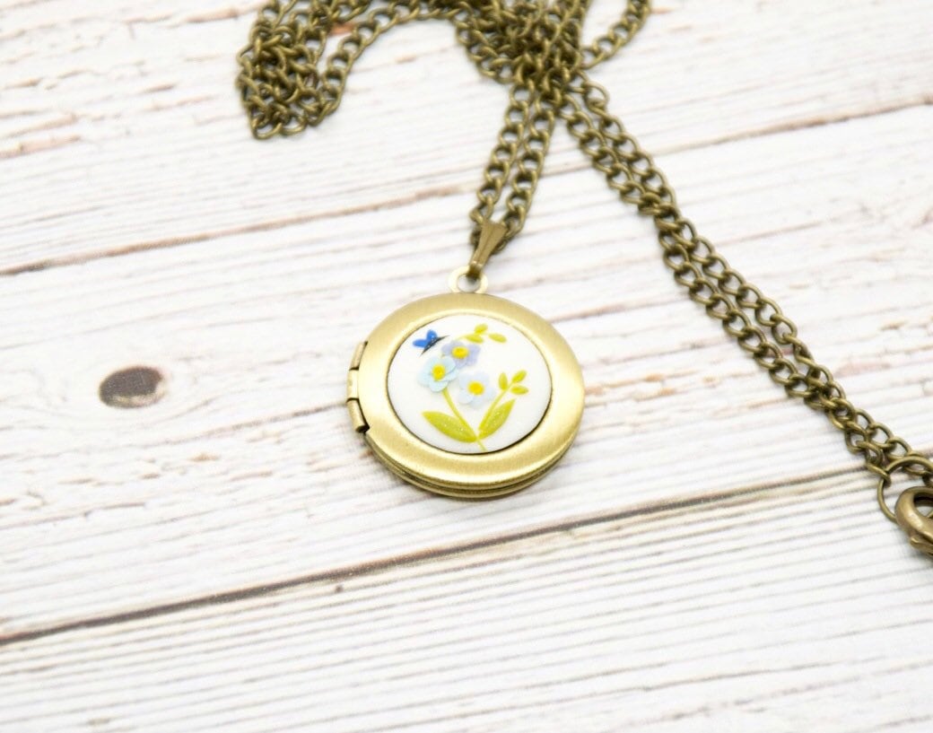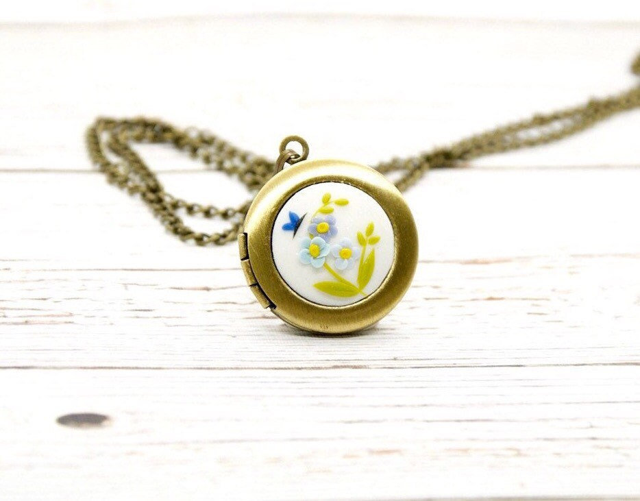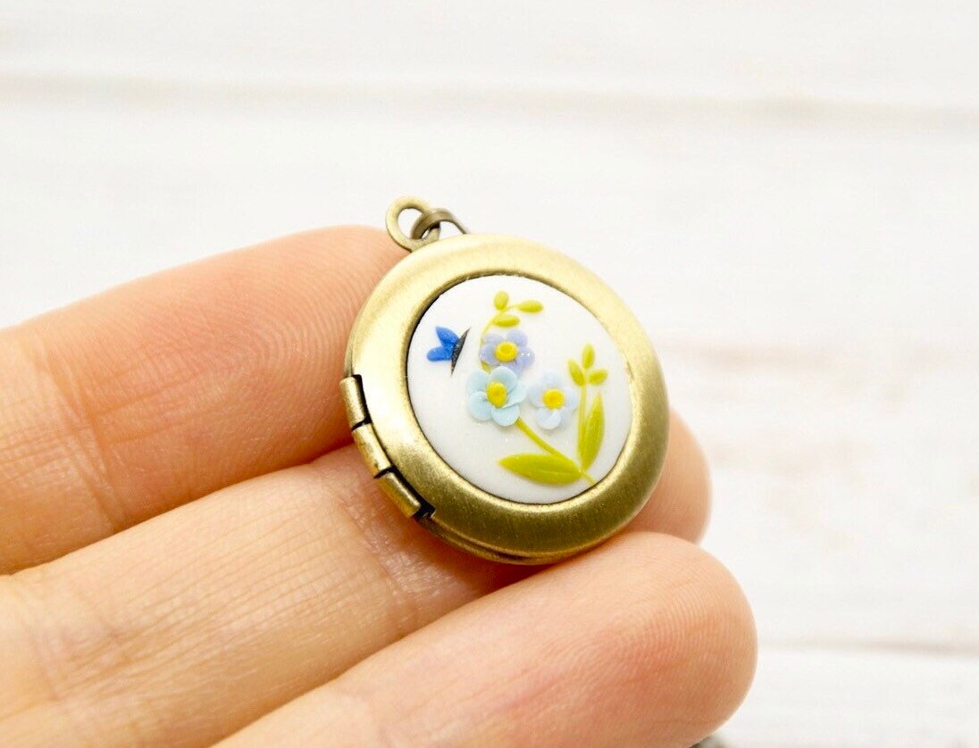 This is a handcrafted personalized locket necklace with 2 photos/messages inside, a detailed design from clay and metal base. Best gift ideas for mother, wife, sister, aunt, daughter, or grandmother for Mother’s Day, wedding, her birthday, or other occasions.