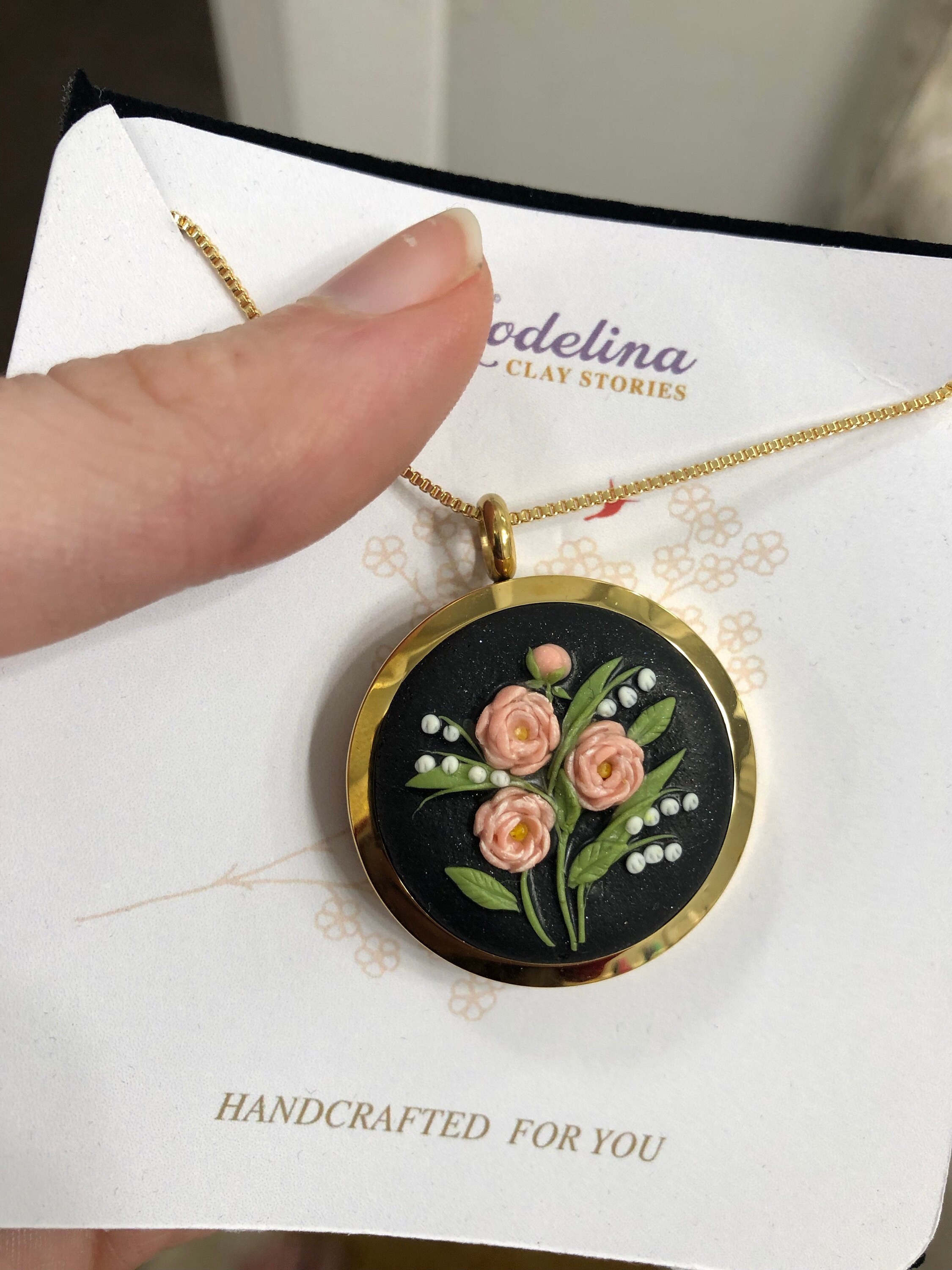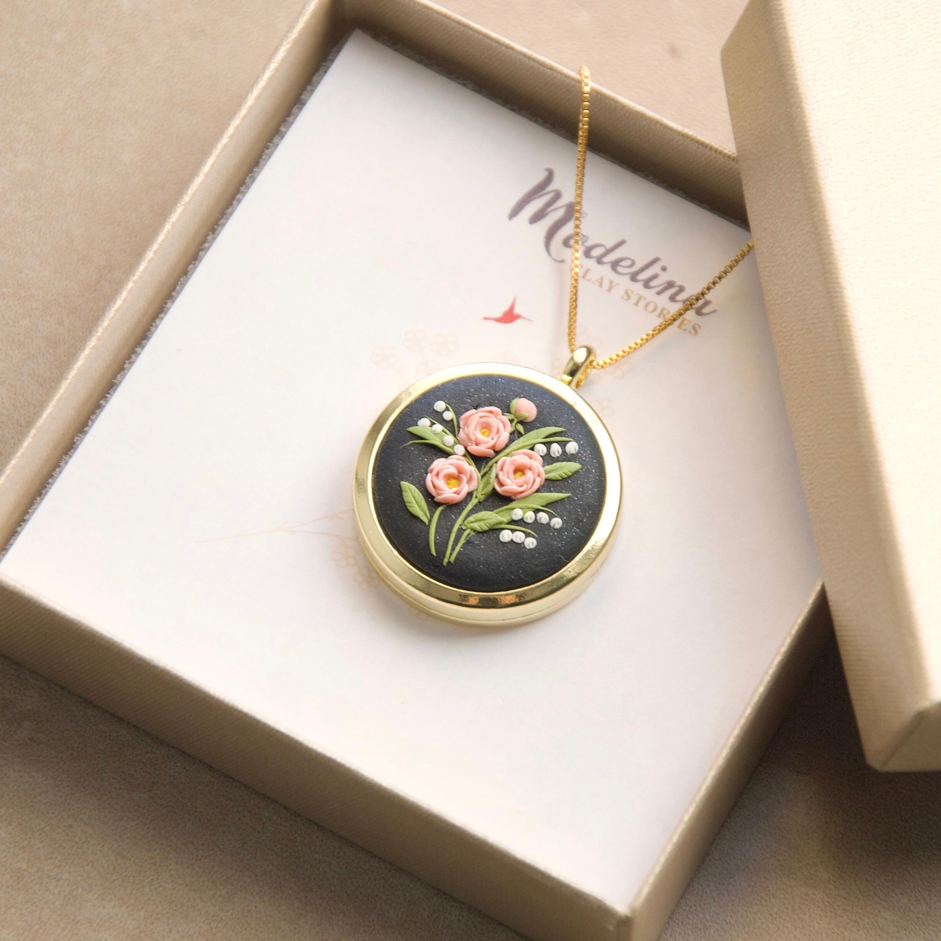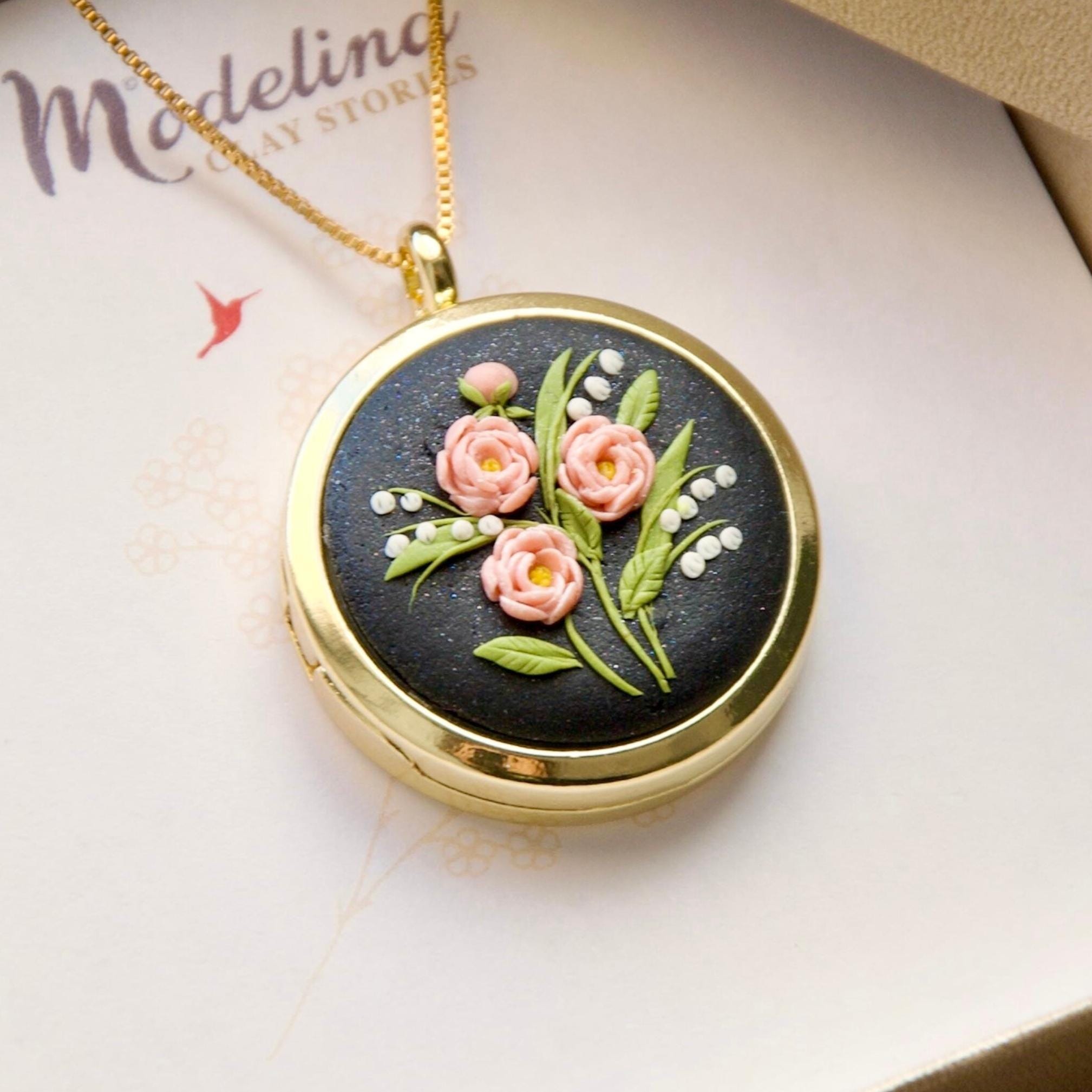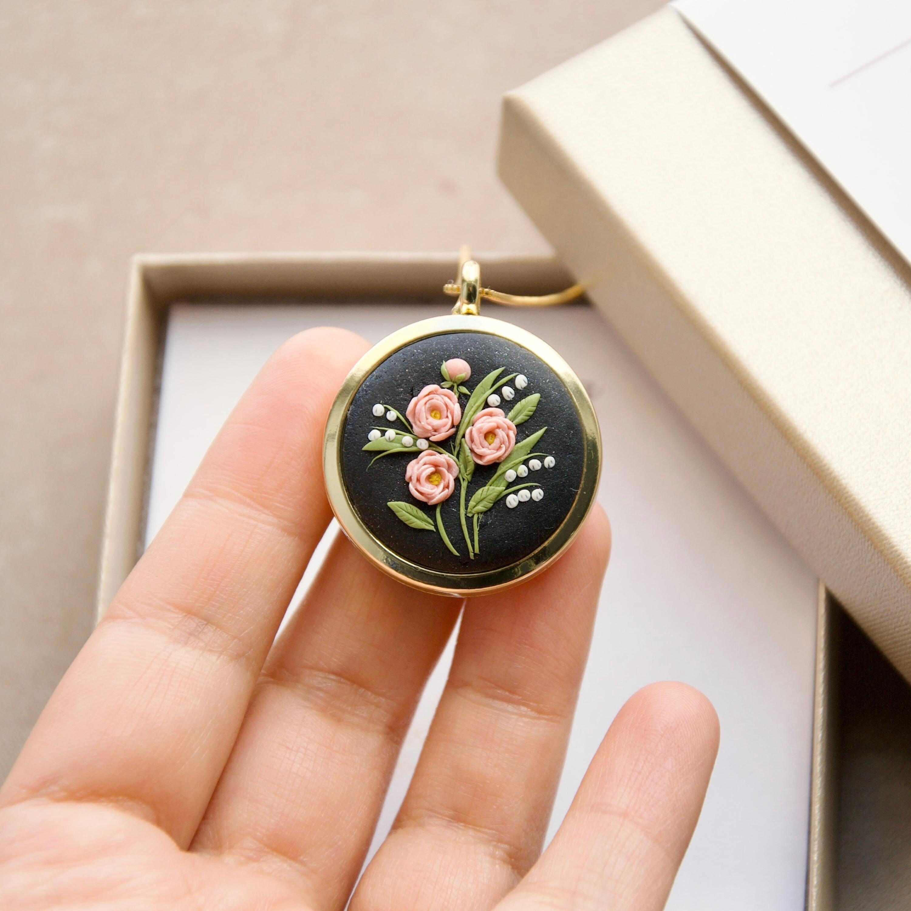 Was looking for a thank you gift for a dear friend who is also doing all my flowers/decor for my 50th birthday event! Her favorite flowers are lily of the valley and peonies. I reached out to the seller to see if we could marry the two on one locker! Her replies were almost immediately and she sent me a draft image of how it would look! Gorgeous! Then she added the personalization of my note inside the locket- it arrived so quickly. And when I opened it/ I cried! It was/is beyond gorgeous and I am SO excited to give this to my dear friend. It’s dainty! Elegant! And the seller a JOY to work with! I wish every Etsy seller was this great!!!! I’ll be ordering from her again for some of my Xmas gifts! If you’re looking a floral gift - buy from this store! And ask for custom designs!!!!