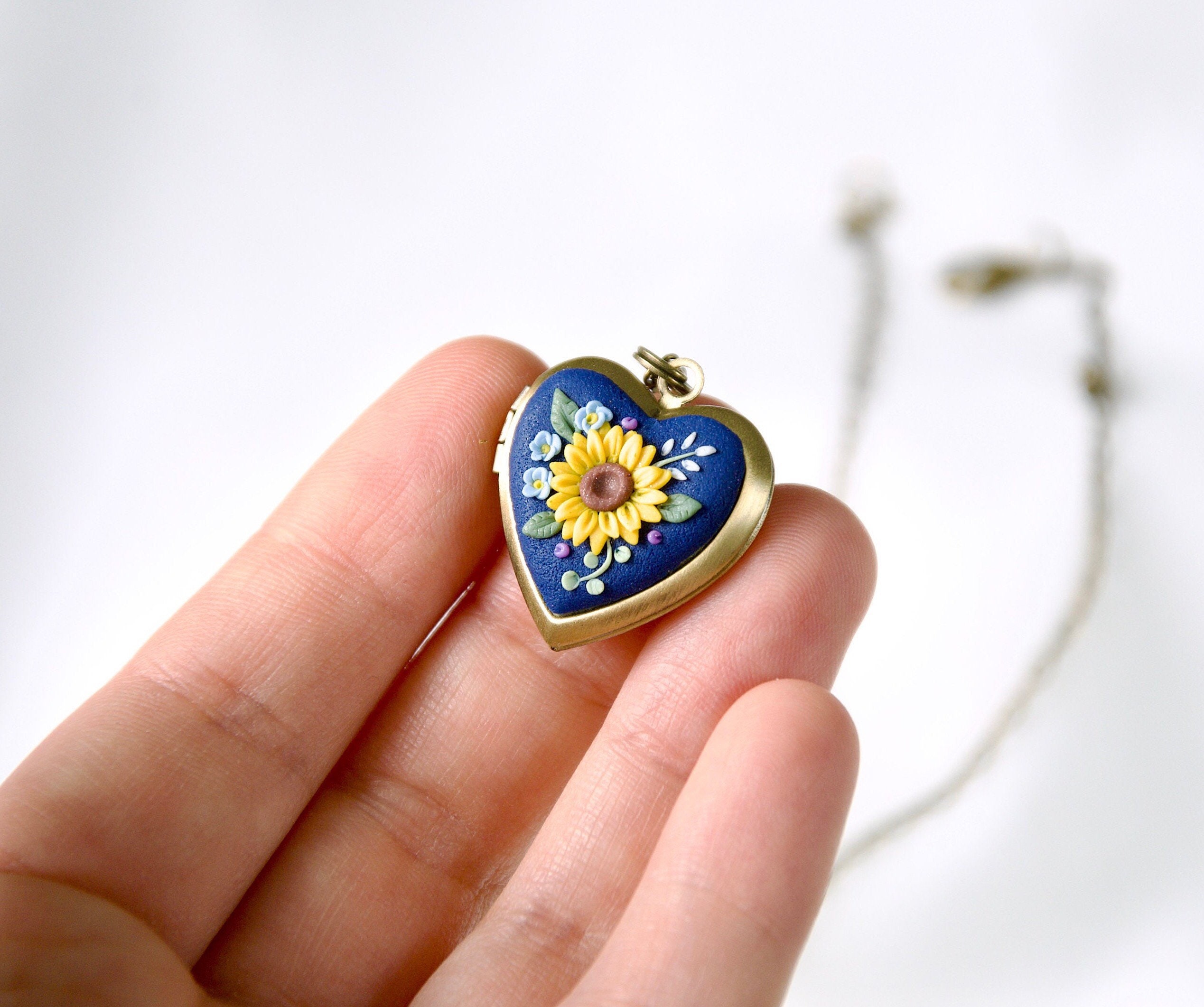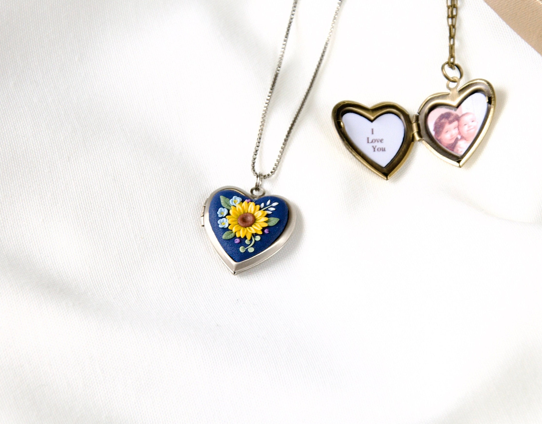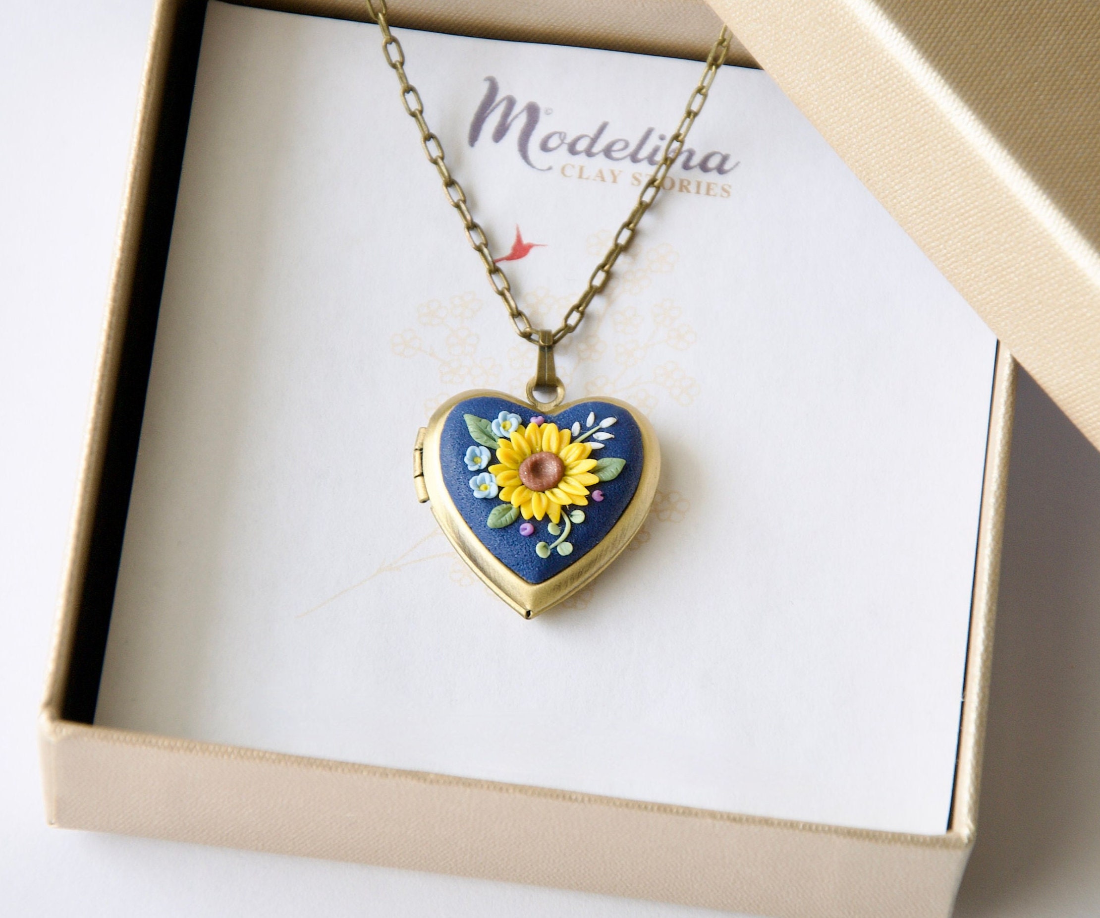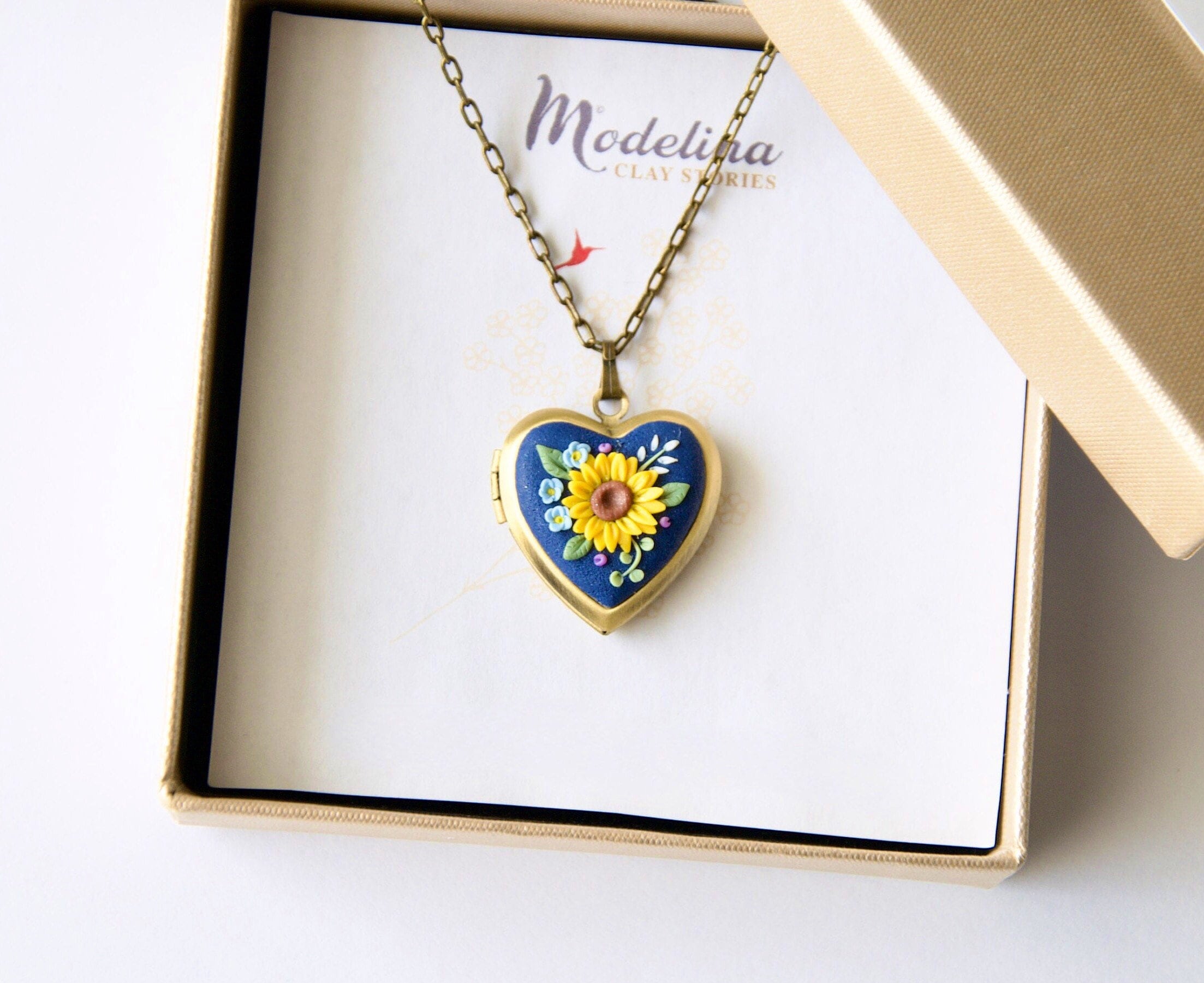 Personalized Sunflower Locket Necklace for Her Custom Flower Heart Pendant Delicate Gift for Mom