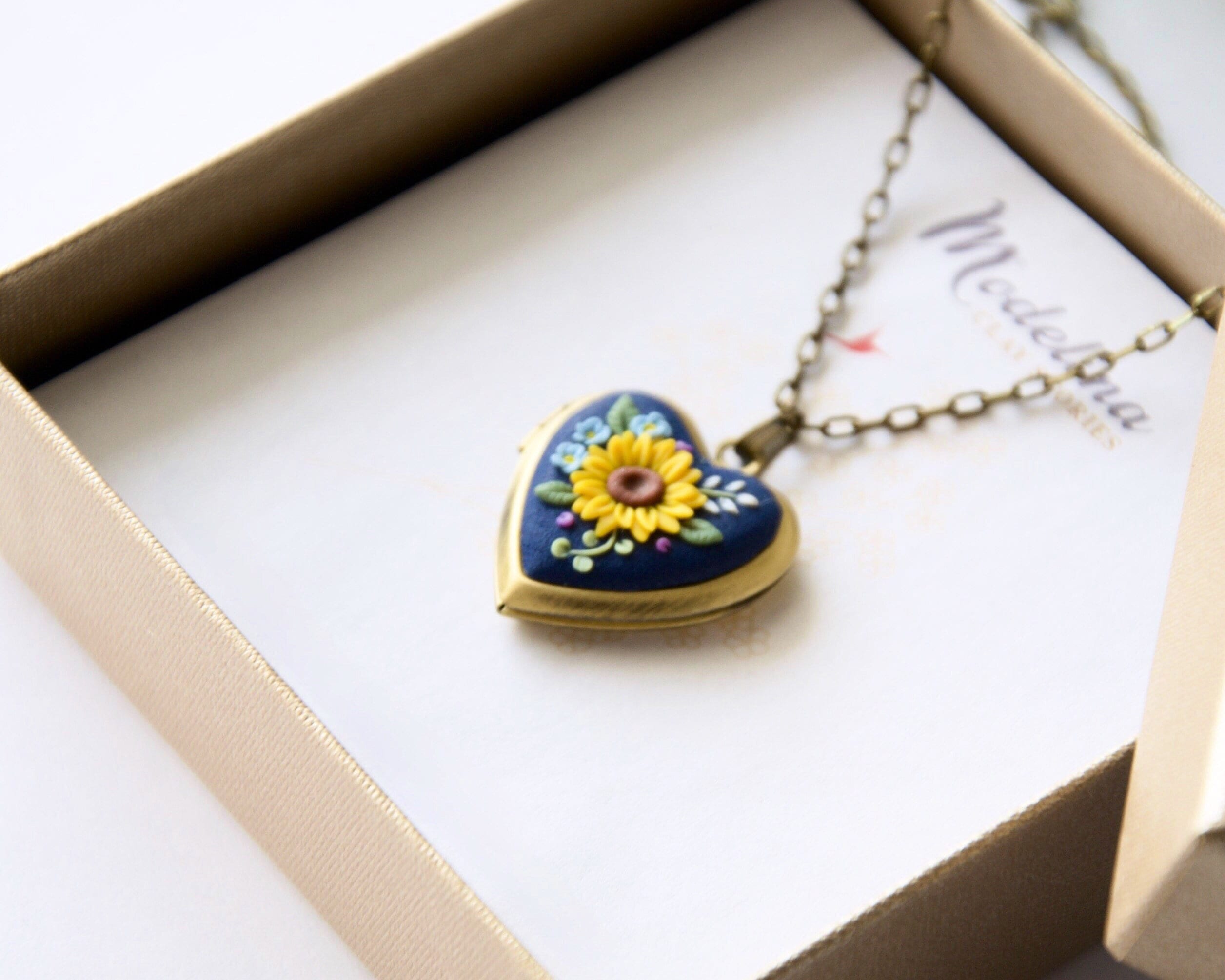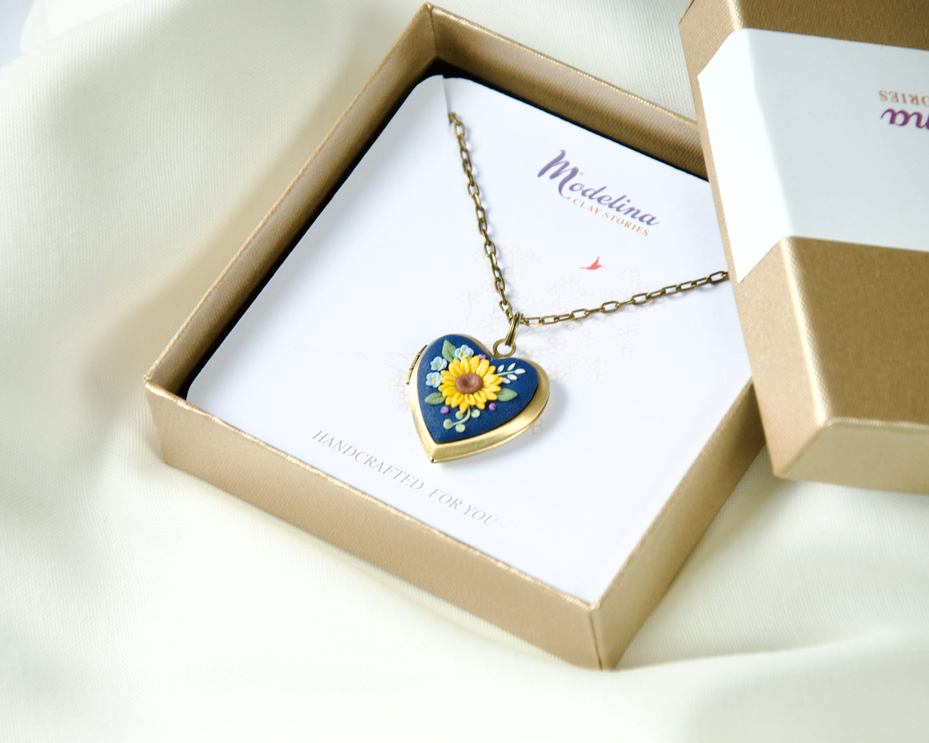 This necklace will be received by her with emotion and joy, it is truly unique. When she opens the beautifully packaged box she will know that you searched for the most beautiful handmade floral locket pendant for her. The personalised photos or the text / quote you will choose to put inside will make this gift be kept and remembered over the years. Sunflowers mean positivity, strength, admiration and loyalty.
