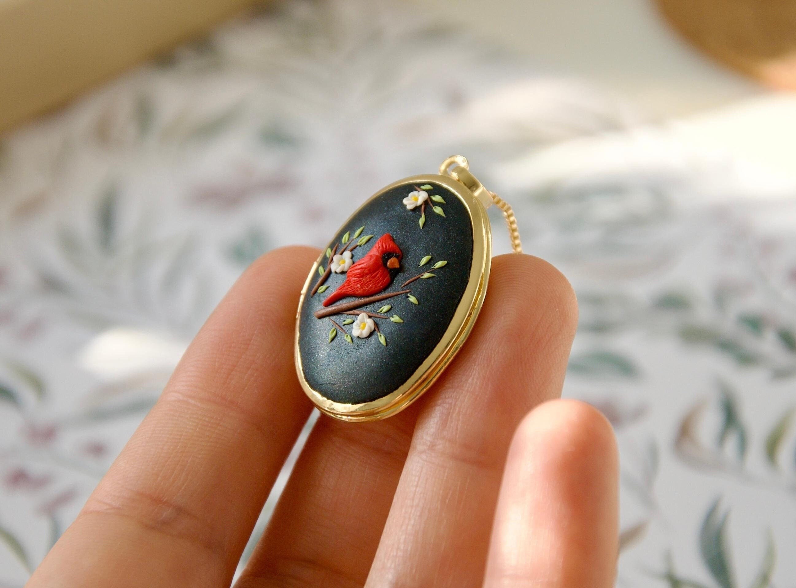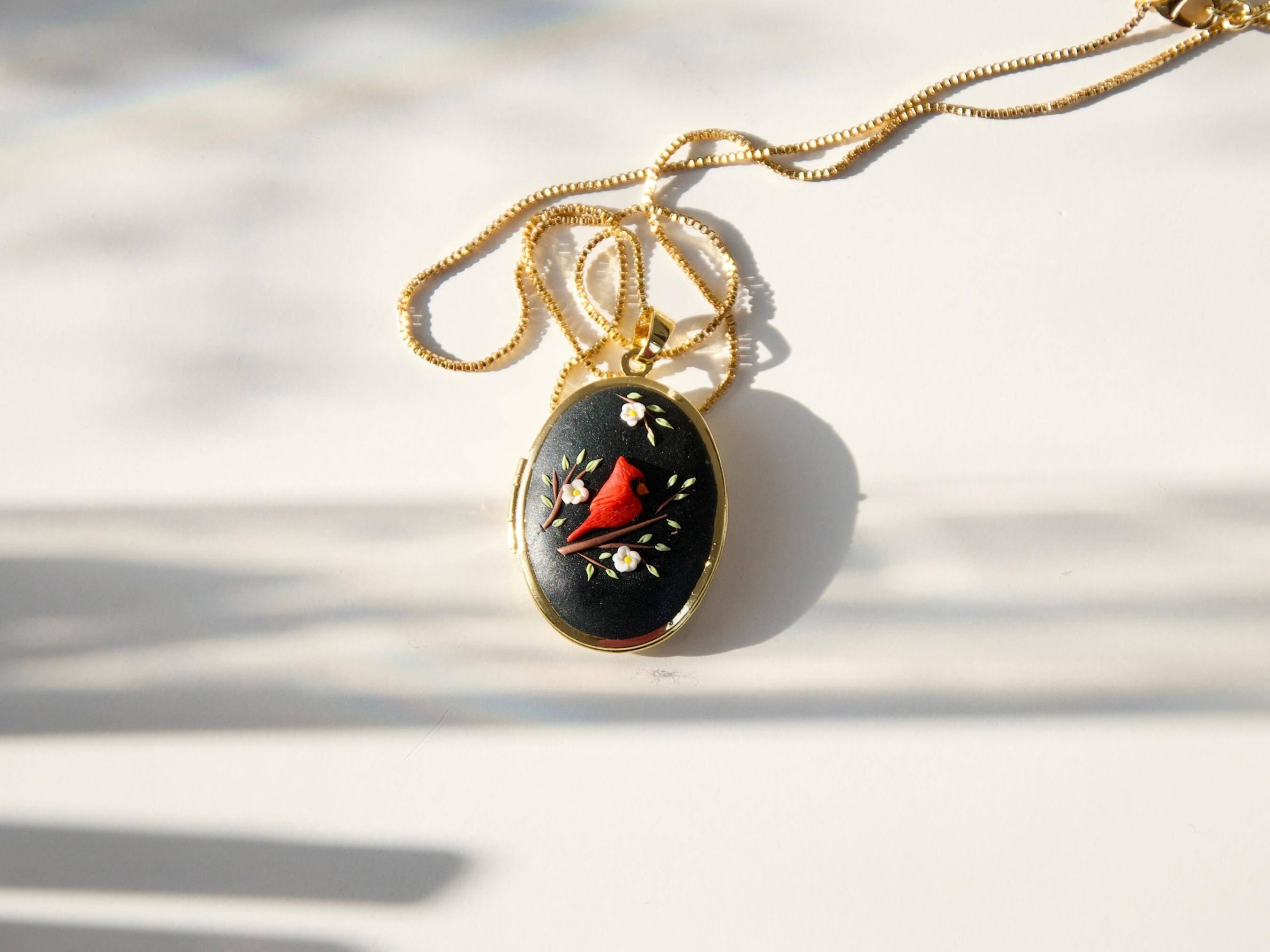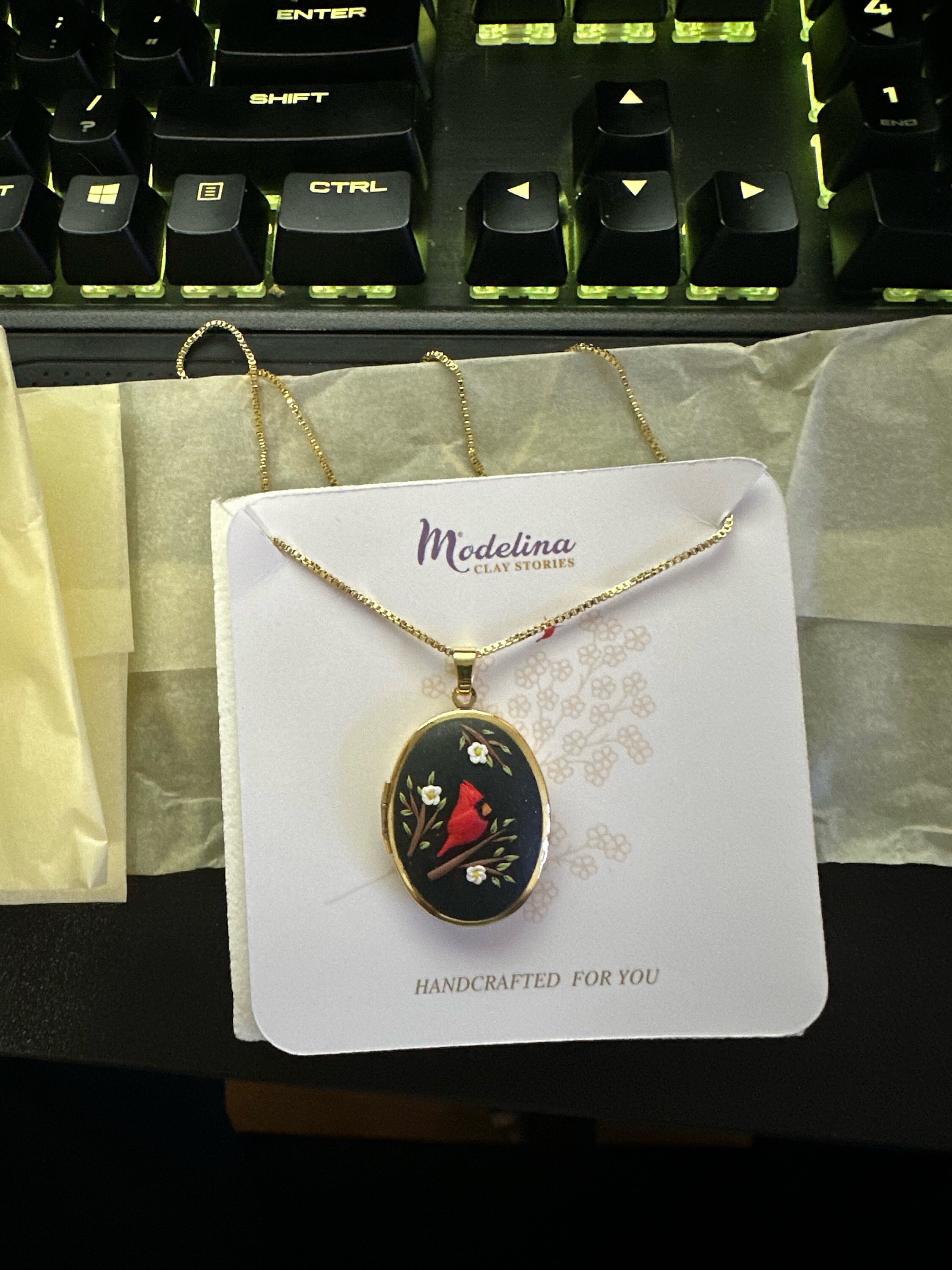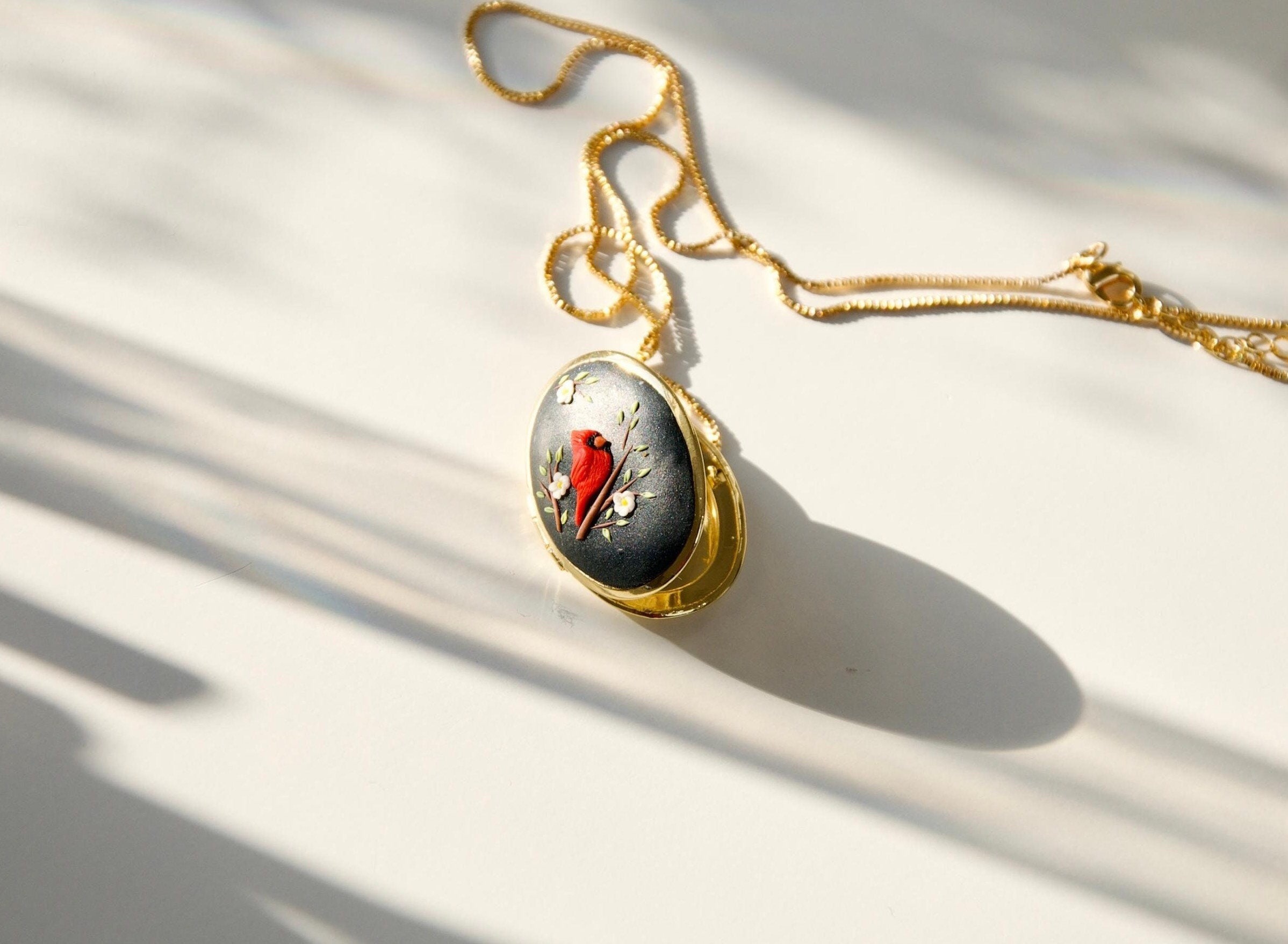 my dad passed away 2 years ago and i’ve felt so low ever since. my dad was my everything. when we got home from his funeral, a cardinal flew beside our car and landed on our fence. then it flew onto his rocking chair. ever since then for every holiday/birthday/ or just in times where I need that reminder he’s still here. I have his thumbprint on a pendant and as soon as I saw this, I had to have it. I added it to my thumbprint pendant so I can keep our pictures at my heart where the necklace falls to. picture do not do this justice. it’s so beautiful in person. the locket itself has a strong clasp so it doesn’t open with the littlest touch. the pictures on the inside look perfect. the package actually arrived the day before his 2 year anniversary. I can’t thank this seller enough. customer service was amazing too.