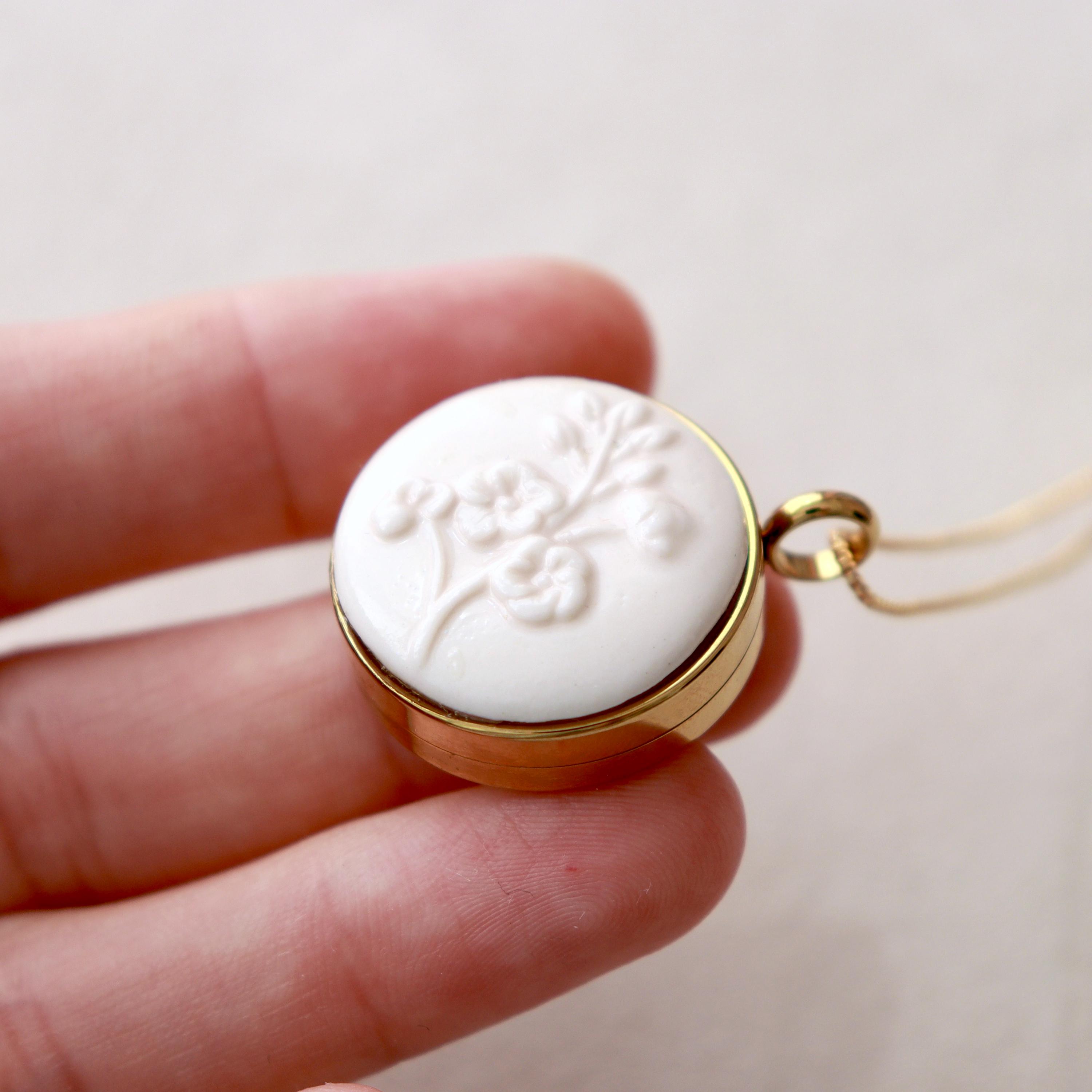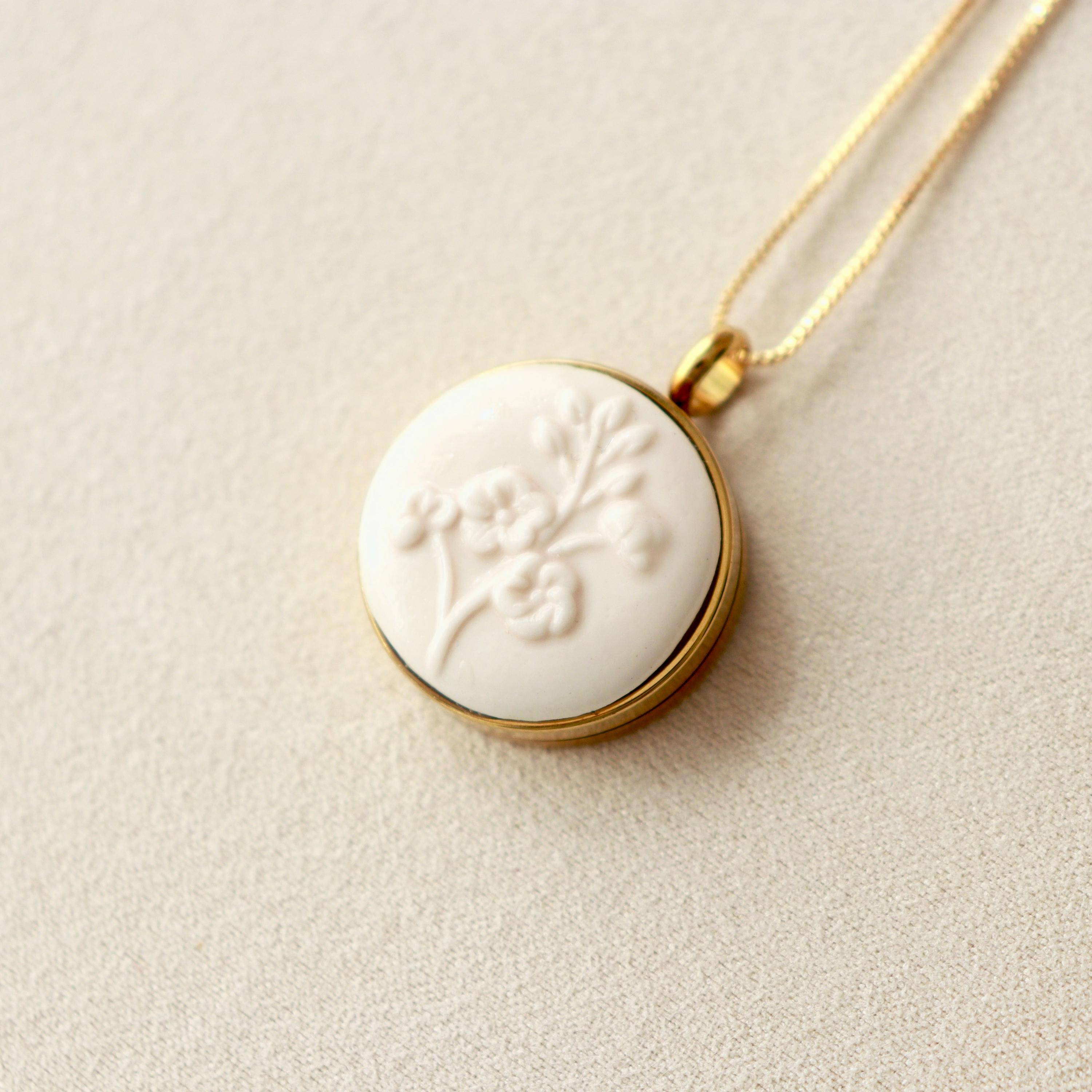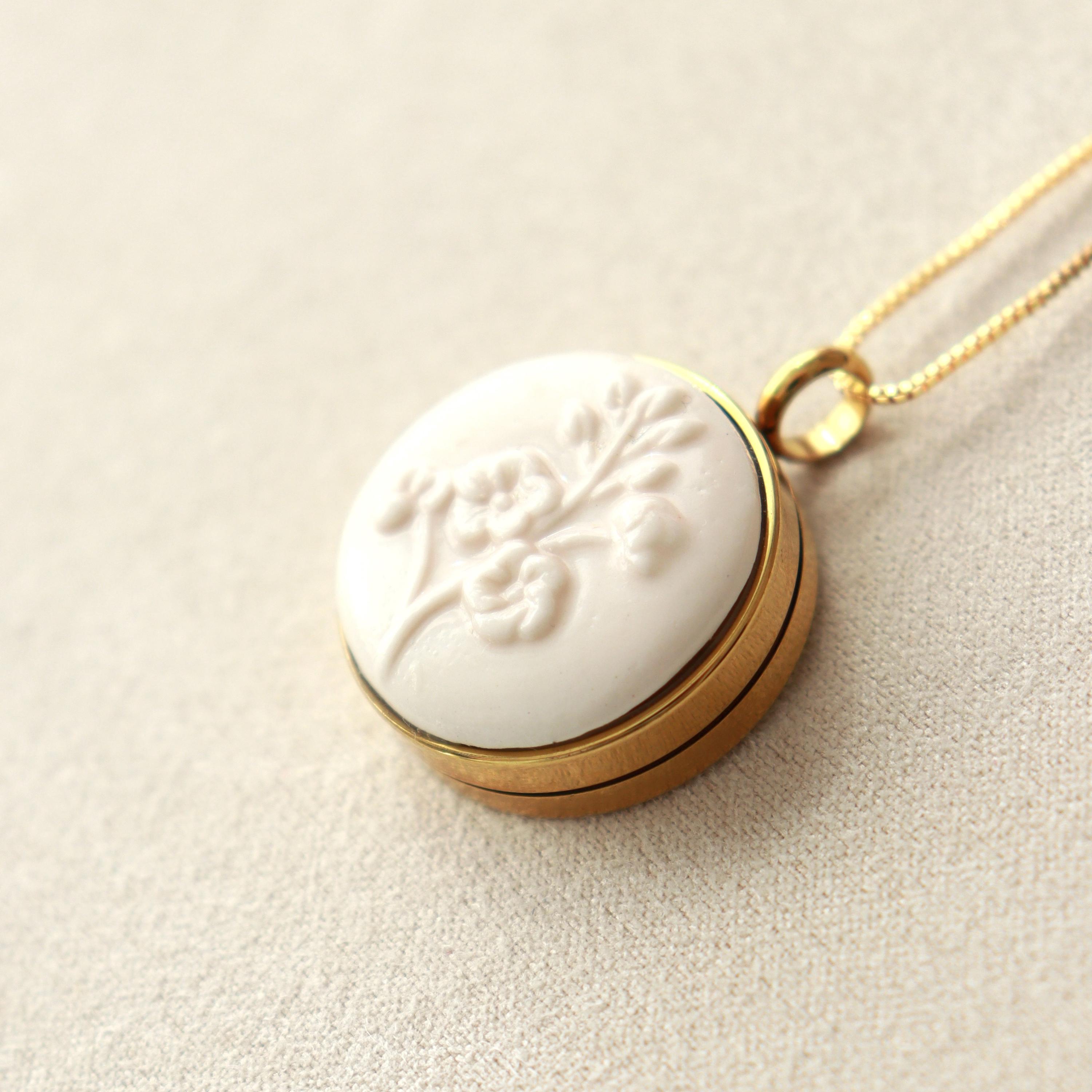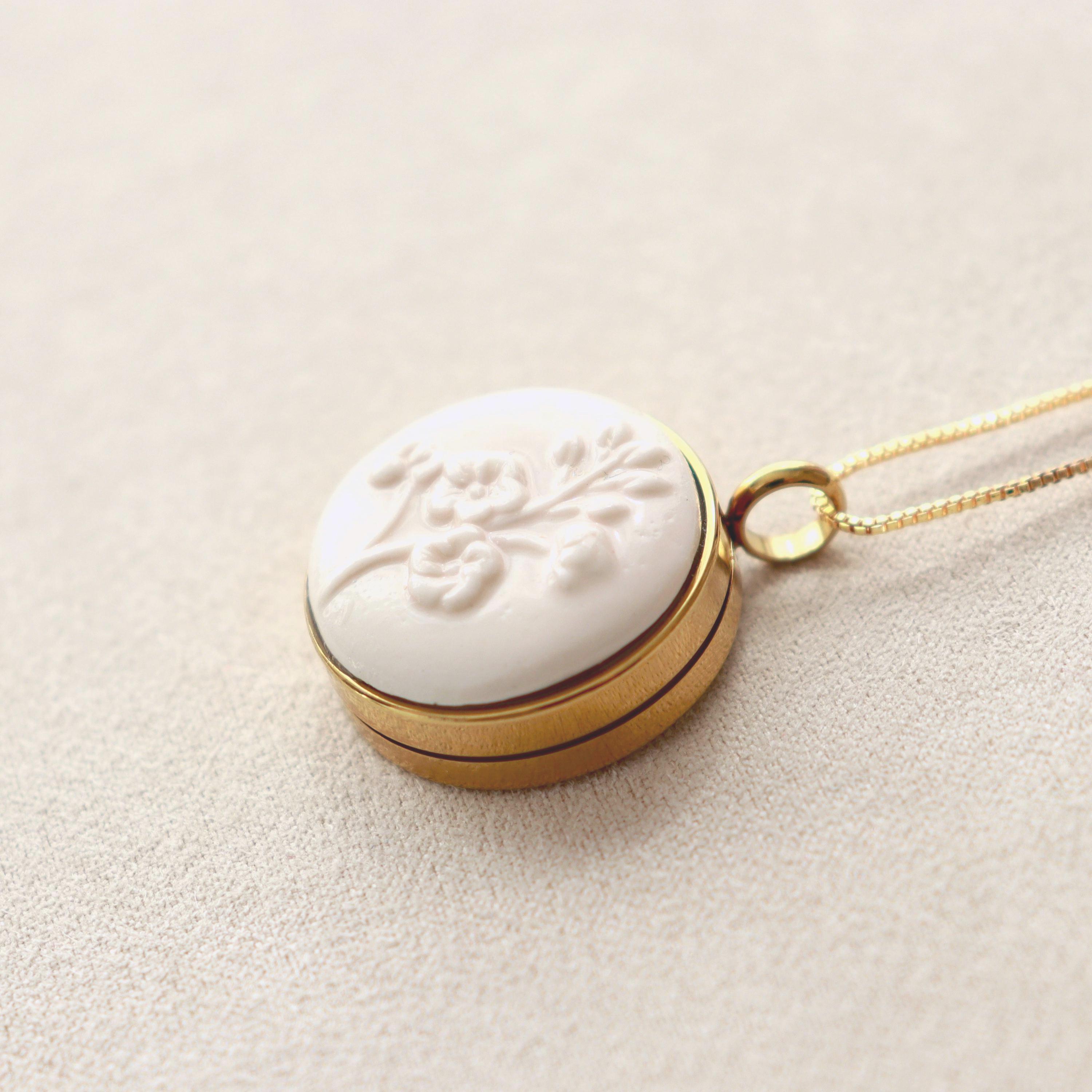 – Materials: porelain, stainless steel locket and glass, gold plated 18K chain.