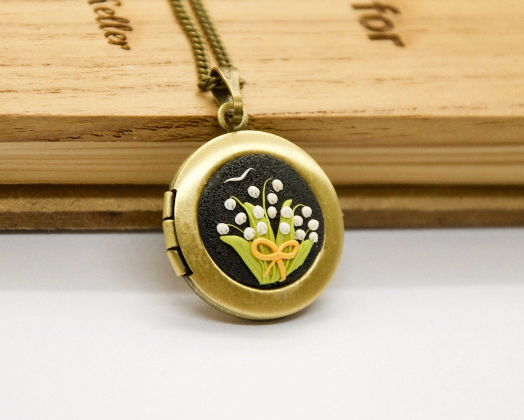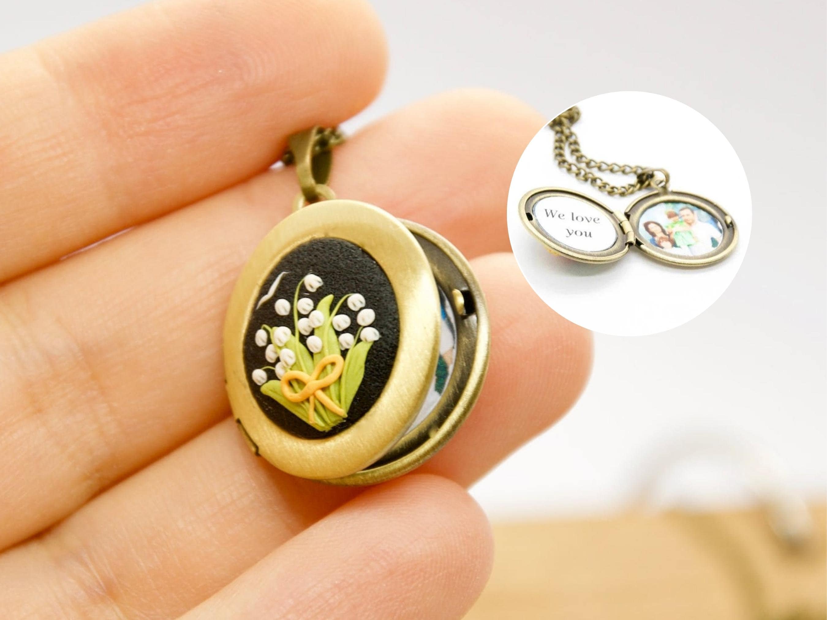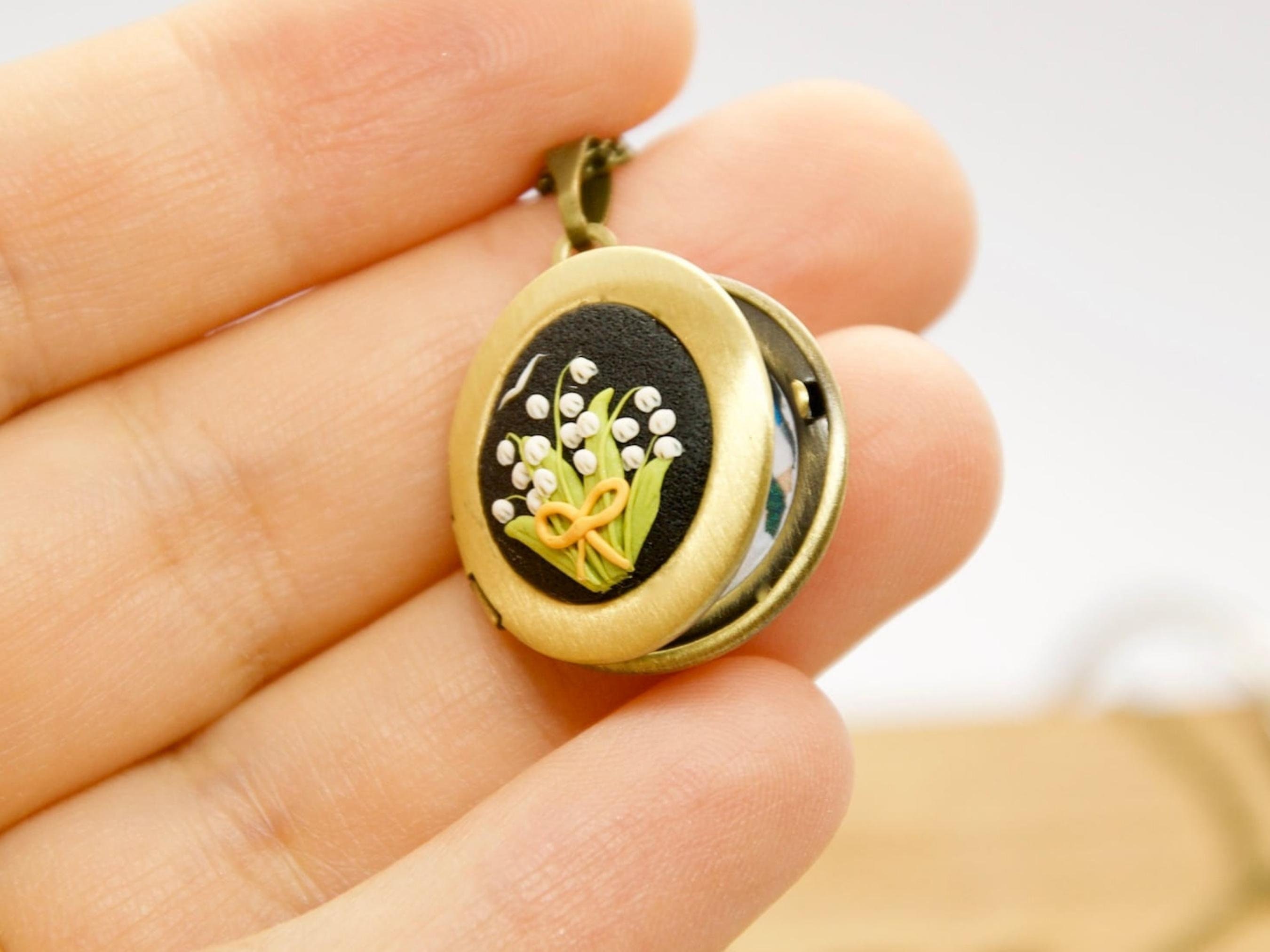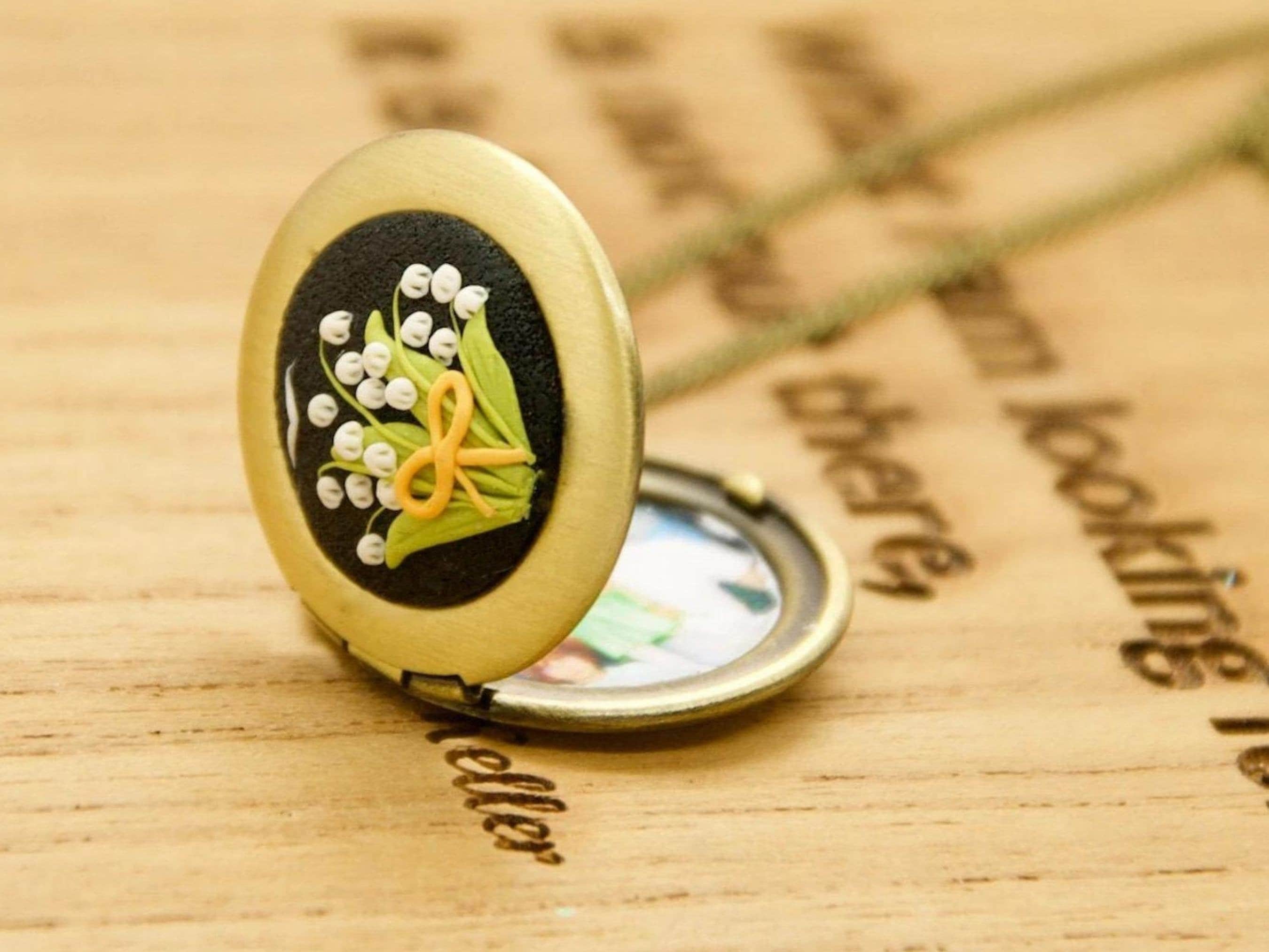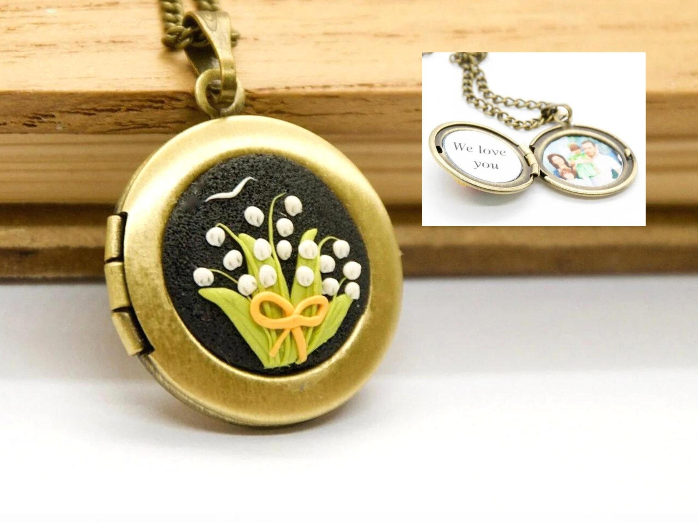 Lily of the Valley Locket Necklace: Personalized Photo Floral Pendant