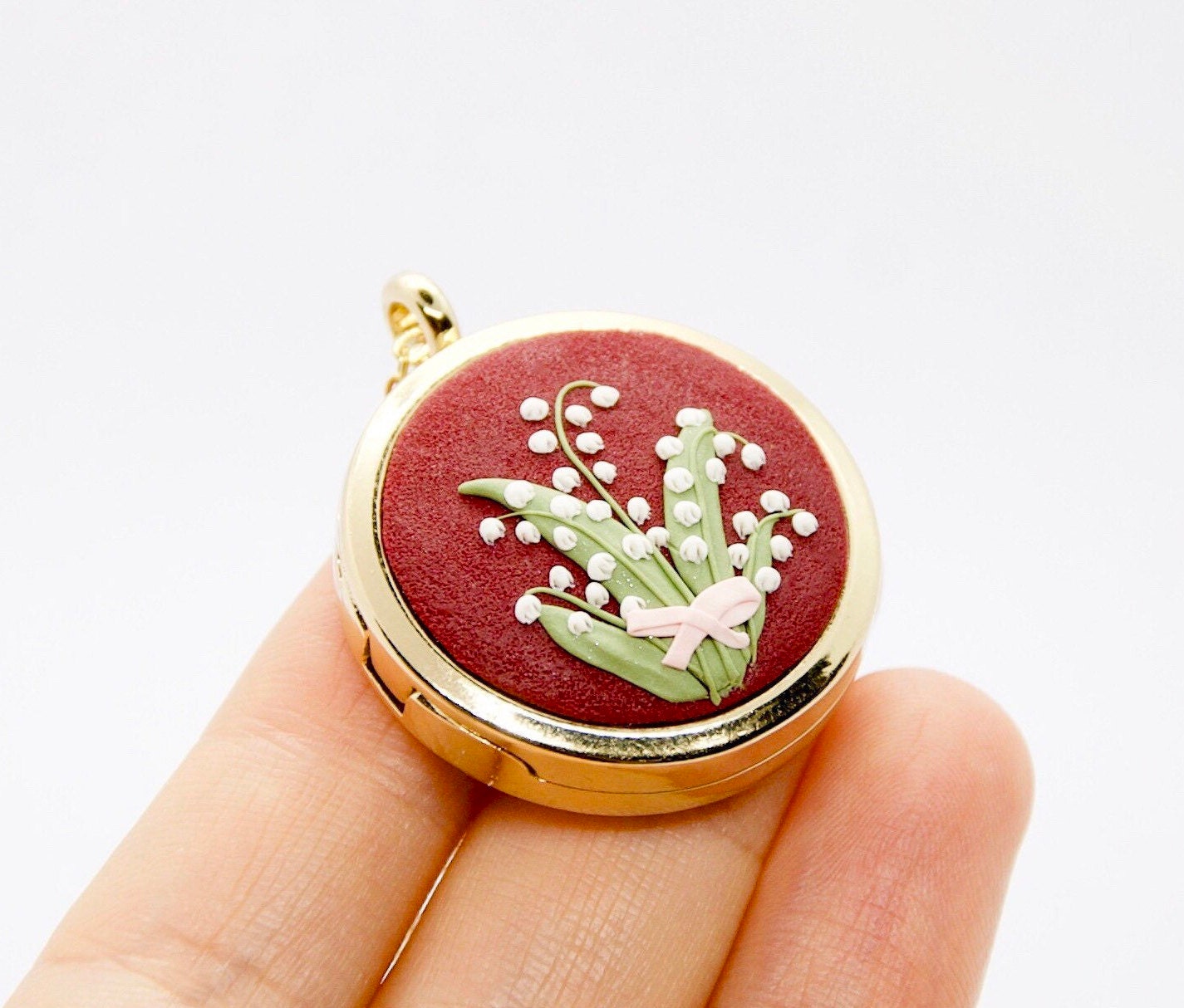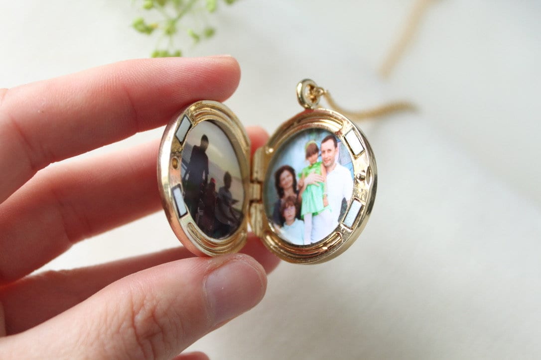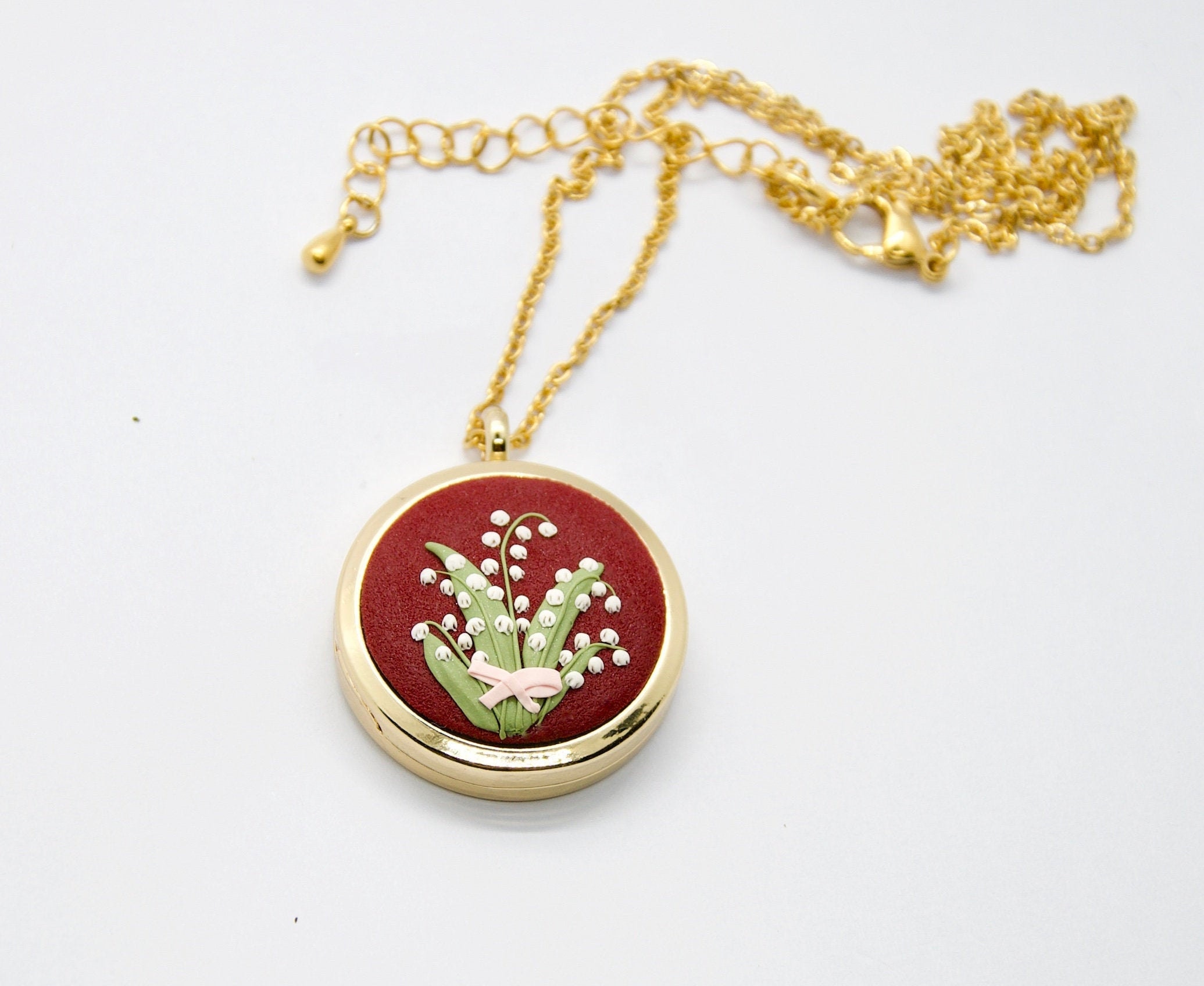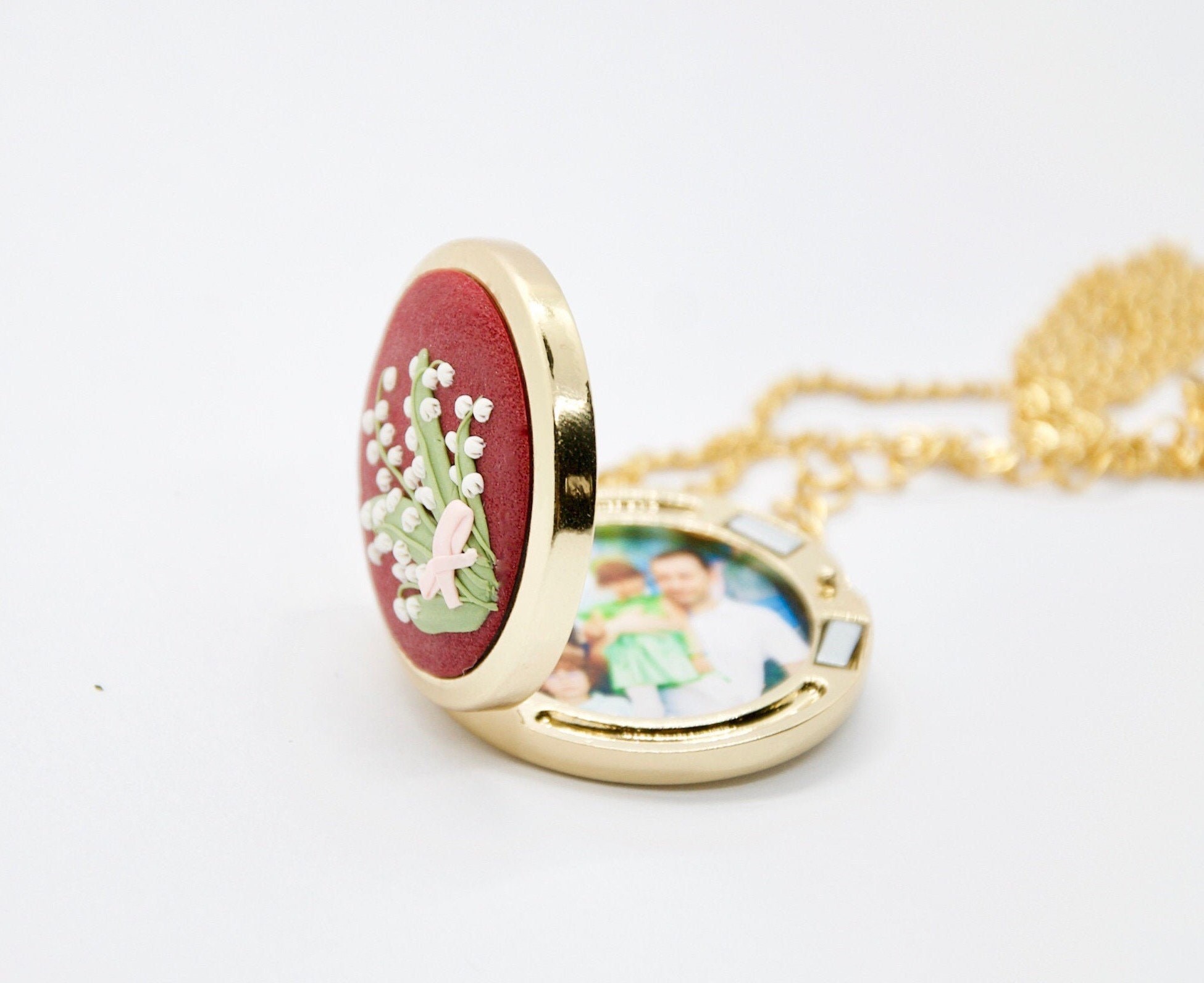 This is a handcrafted personalized locket necklace with 3 photos/messages inside, a detailed design from clay and metal base. Best gift ideas for mother, wife, sister, aunt, daughter, or grandmother for Mother’s Day, wedding, her birthday, or other occasions.