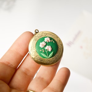 Lily of the Valley Locket Necklace, Personalized Photo Pendant